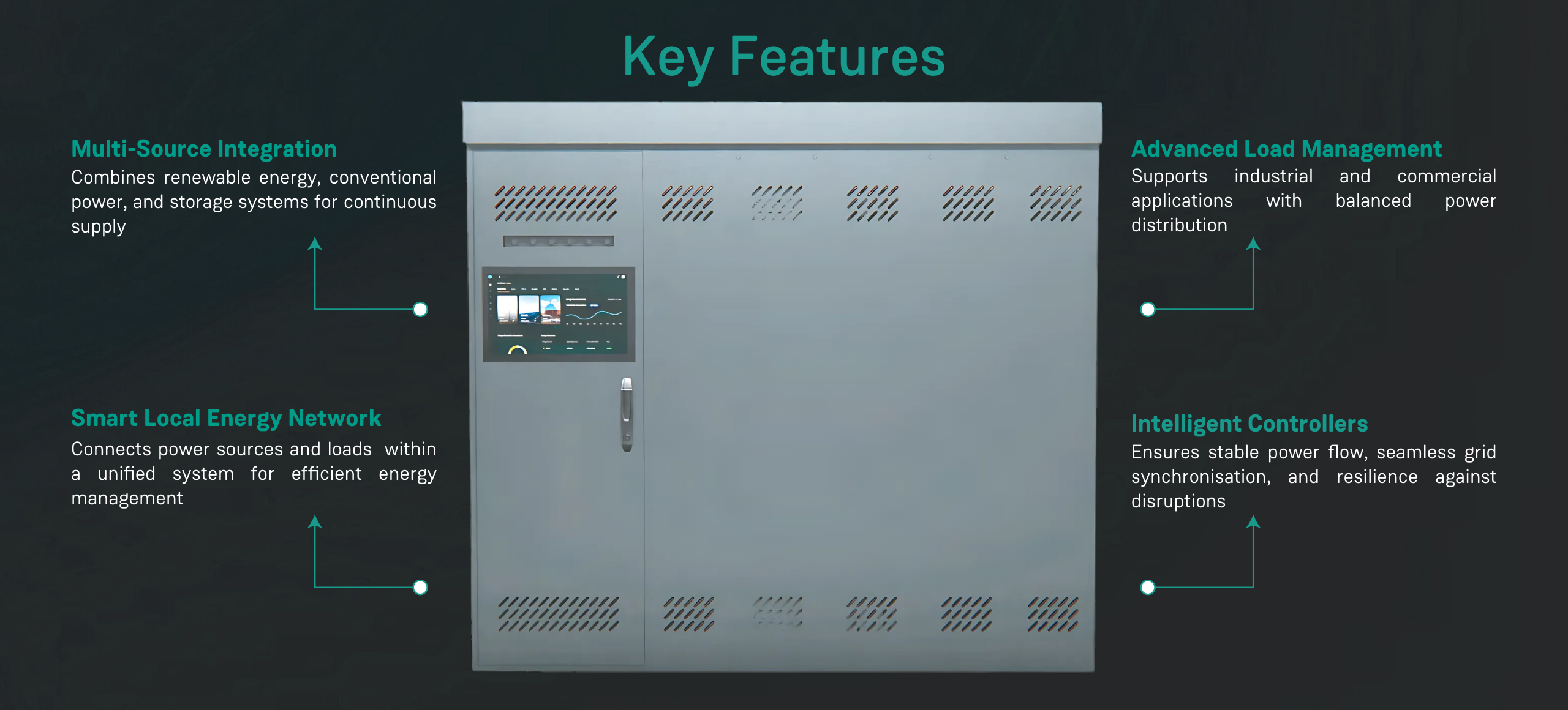 Efficiently integrates solar, wind, and other renewable sources, reducing dependence on fossil fuels while maximising energy efficiency through advanced smart controls.